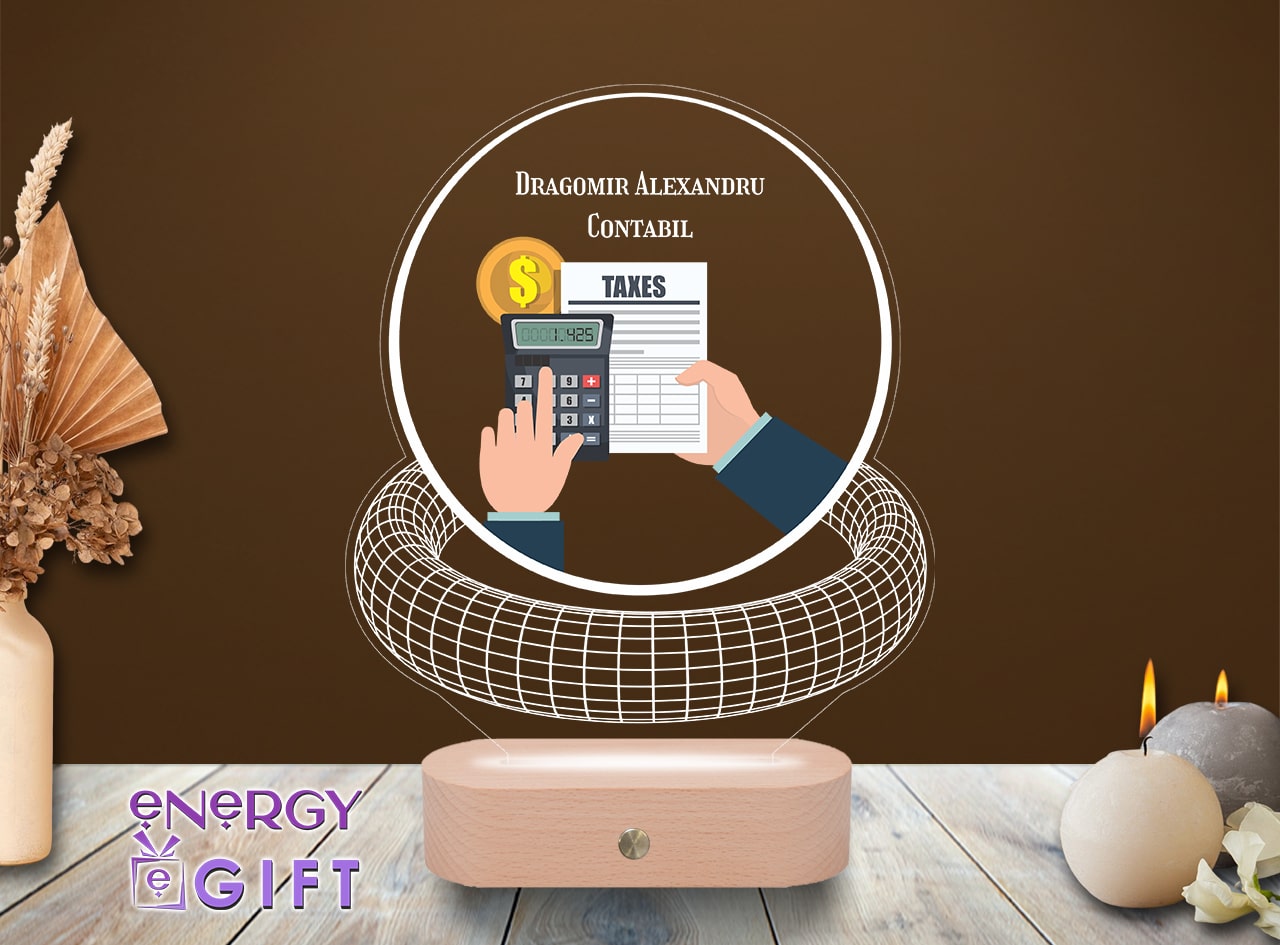O lampa LED 3D personalizată dedicată contabililor poate include numele lor, funcția sau un mesaj motivațional. În plus, poate fi personalizată cu simboluri legate de domeniul financiar: balanțe contabile, grafice, cifre sau chiar un joc vizual între ordine și echilibru. Când este aprinsă, lampa devine mai mult decât un obiect decorativ – devine o metaforă a meseriei lor: lumina clarității într-o lume a cifrelor.